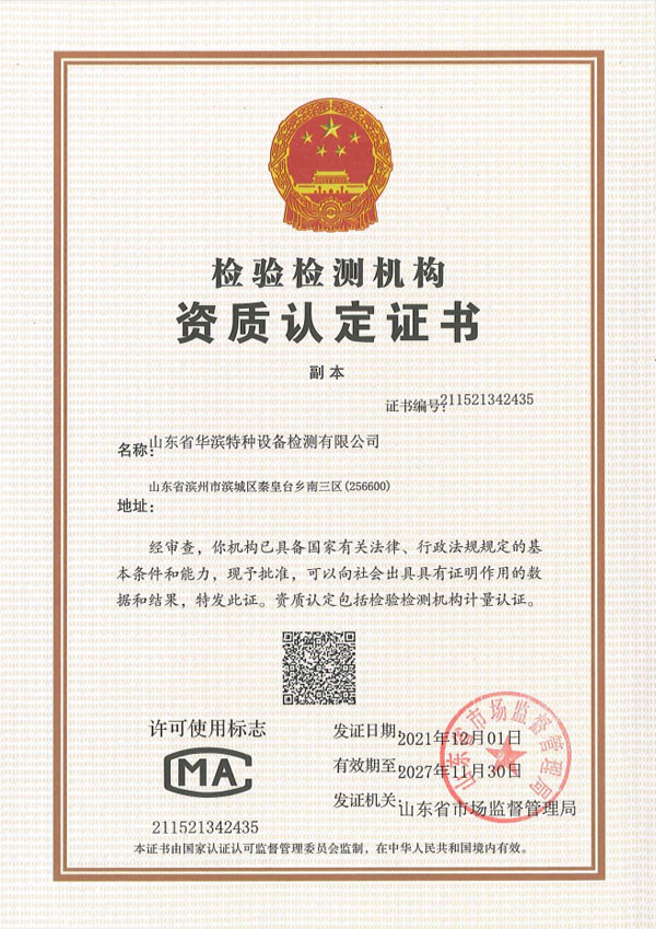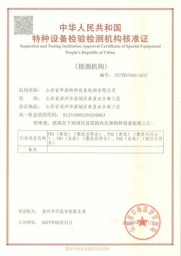 山東省華濱特種設備檢測有限公司